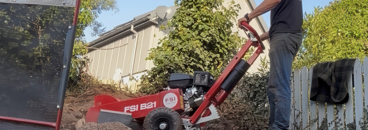 “It’s light and compact enough to lift and manoeuvre around properties and steps, but powerful enough to handle most of the stumps we see in a residential garden. We’d previously hired the slightly larger FSI B22 so I knew first off to expect fantastic build quality and reliability. In addition, the FSI B21 is equipped with some useful features such as the hill-hold brake assist which is great for loading on trucks and working on slopes. It’s fitted right in with how and where we work” comments Joe.
